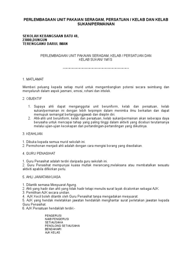 1 contoh surat permohonan penubuhan pasukan pakaian seragam kelab persatuan .